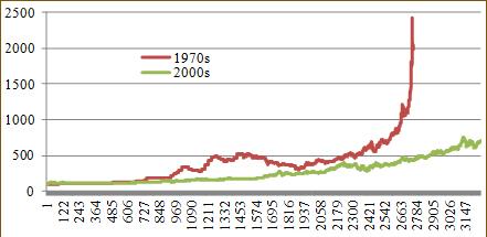 There are numerous similarities for the wider economy, between now and the 70s: a bull market in commodities, inflation, high unemployment, economic and social problems, floundering government and policymakers, volatility across asset markets and so on.