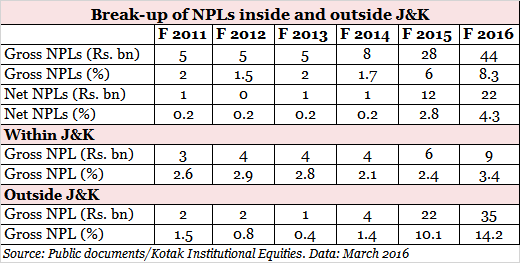 Things turned out differently. Asset quality woes outside the State kept deteriorating with gross bad loans reaching a whopping 14% of loans outside the State. Even within the State asset quality worsened progressively even before the political situation turned for the worse.