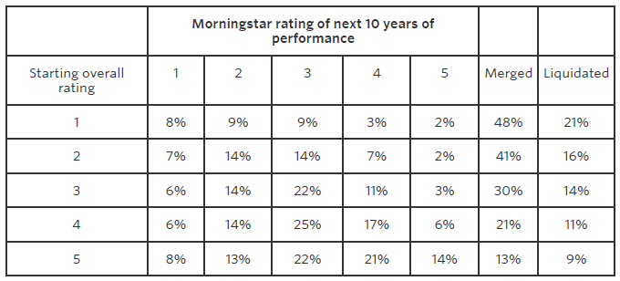 Well, that's the nature of numbers. Five-star funds can't go to six; they can only decline. One-star funds can't go to zero; they can only be buried or improve. The numbers statistically must move toward the mean.