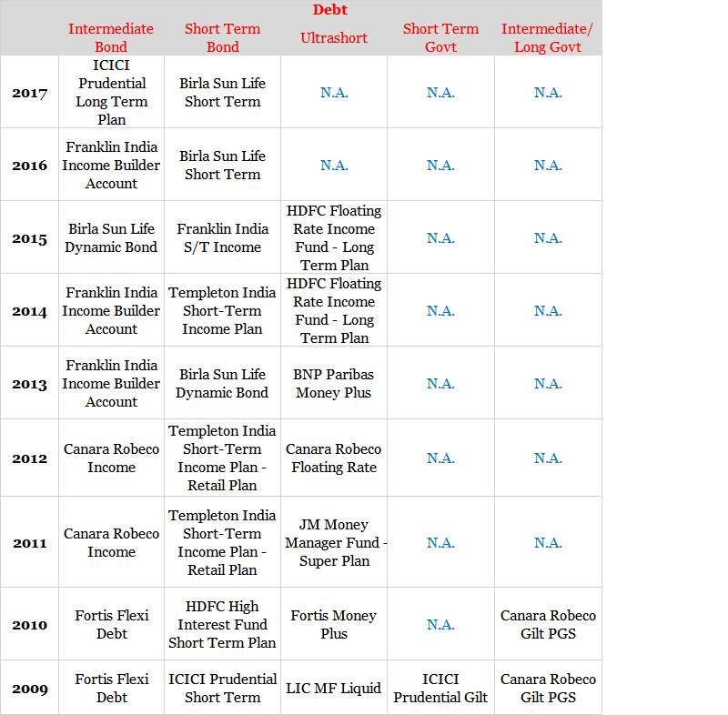 The below category awards have been terminated. But it is interesting to see HDFC Mutual Fund dominate this space.