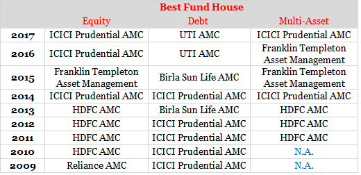 In terms of the best fund house, it started off with just equity and debt with the multi-asset category being introduced later.