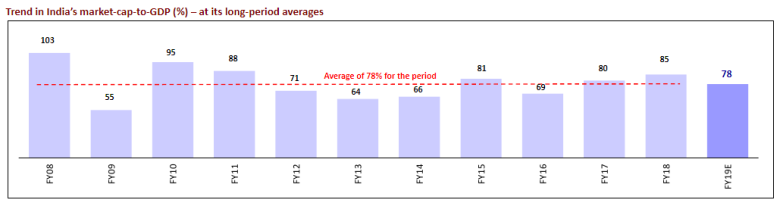 - Current Sensex PE ratio of around 23.3 times, is well above (around 30% above) the long-term average.