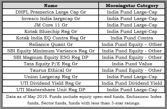 The table below shows select 4- and 5-globe rated Indian open-end funds.