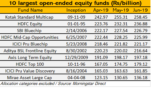 This fund is currently the largest fund across categories but not by a huge margin. The table below lists the out the 10 largest open-ended equity funds (excluding allocation categories) in the Indian market just to give you a perspective.