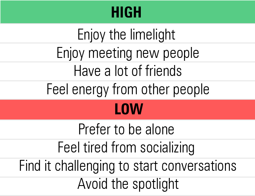 This month's article suggests how to advise extraverts. As a quick refresher, extraversion (also known as extroversion) is a trait described by talkativeness, assertiveness, and expressiveness. People high in extraversion are outgoing and get energy from the people around them. Being in social situations makes them feel energetic or even excited. People who are low in extraversion (also known as introversion) tend to be reserved and have to expend energy in social settings. They often prefer to be "in the corner" away from others.