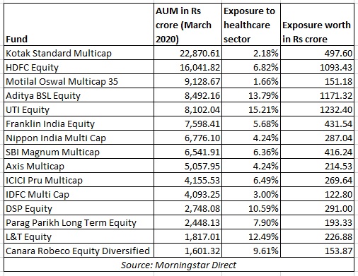 Exposure of multi cap funds to healthcare (March 2020)