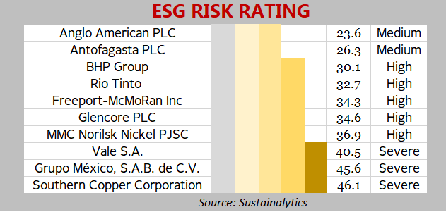 To stick with the above example, within its industry, Rio Tinto is categorised as High Risk with the top material ESG issues being Corporate Governance / Community Relations / Emissions, Effluents and Waste / Resource Use.