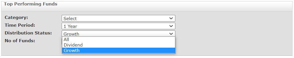 Under Distribution Status option, you can shortlist funds based on three options – dividend, growth or both.