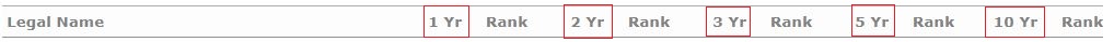 In the above list, you see numbers under 10-year window in Bold. This means that the funds are sorted based on the highest performers over a ten-year period.