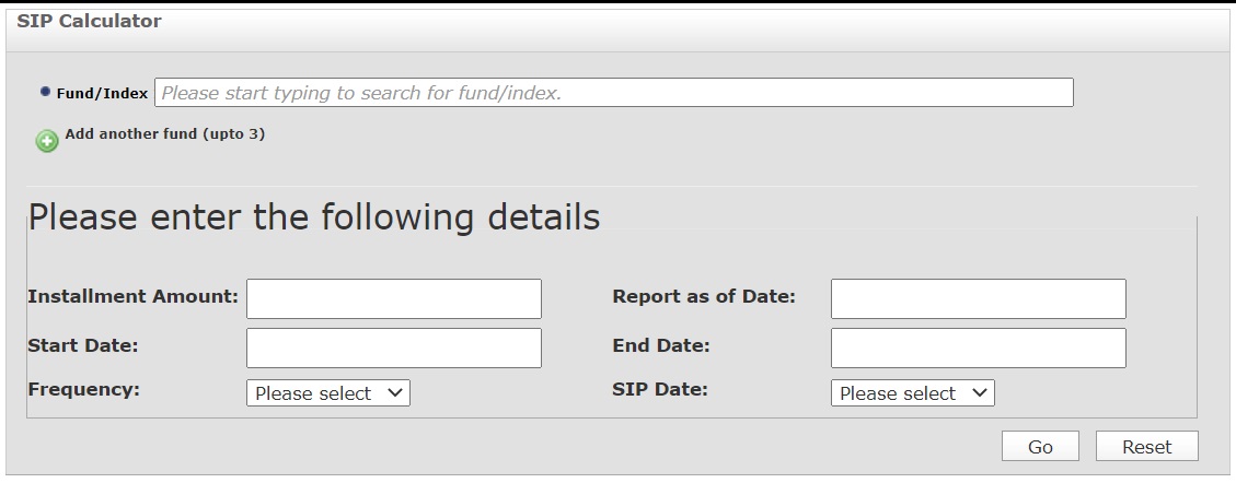 As you can see in the image below, you can set the frequency of SIP installment as fortnightly, monthly or quarterly. Put in the amount you invest in Instalment Amount. You can select up to three funds at one go. After you insert the name of the fund you wish to search, the results will show the Price or NAV at which you made each SIP installment every month, cumulative units you would accumulate, and the investment value.