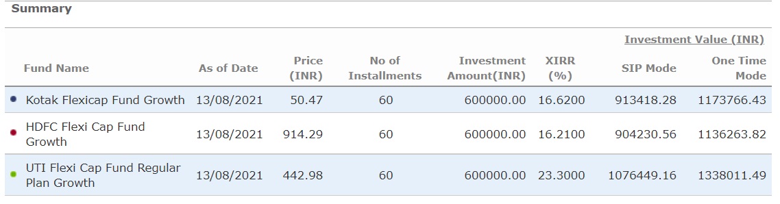 We searched for the three largest Flexi Cap funds with a monthly investment of Rs 10,000 for five years.