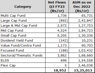 Source: AMFI data / Date as on December 2022 / All figures in Rs/cr