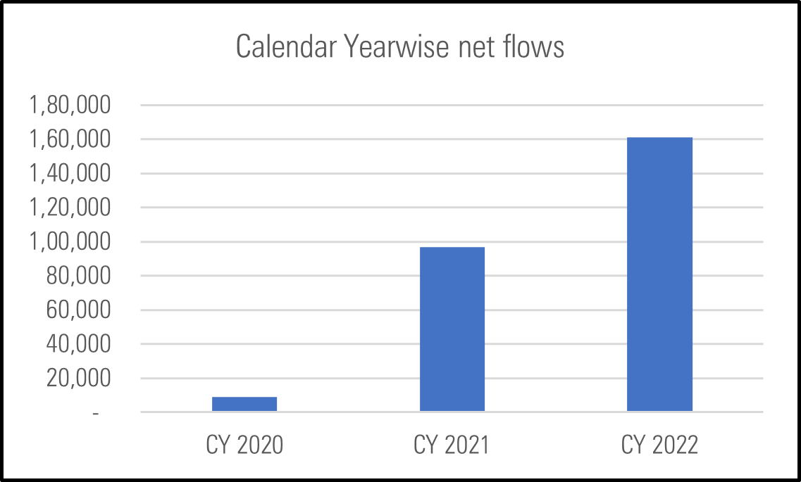 While the net inflows in equities over the last few quarters have shown a downward trajectory, when we compare the calendar year-wise net inflows, the growth is quite impressive.