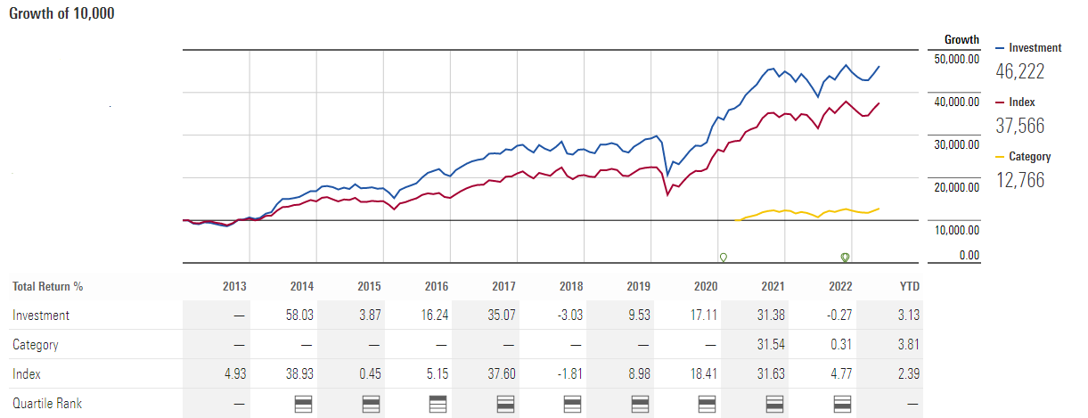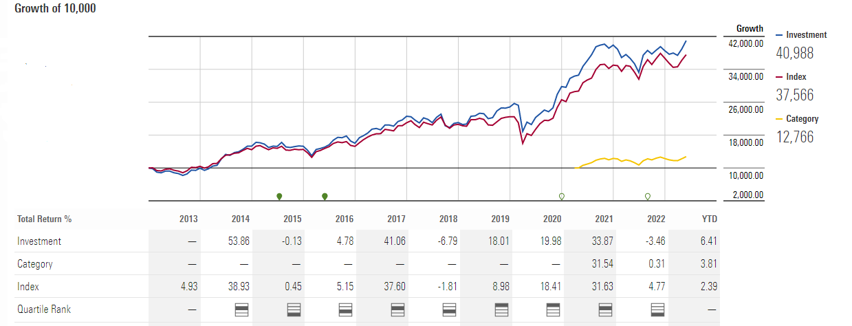 Bhole has a clear understanding of how he wants to manage this fund and has consistently adhered to his process framework. Even during difficult phases where growth was out of favour, he hasn’t deviated from his style/framework, nor has he changed his approach to adapt and bring down benchmark risk. That said, when the growth style has been in favour, Bhole’s superior stock-picking skills and framework have shone. We therefore upgrade the Process Pillar rating to Above Average from Average.